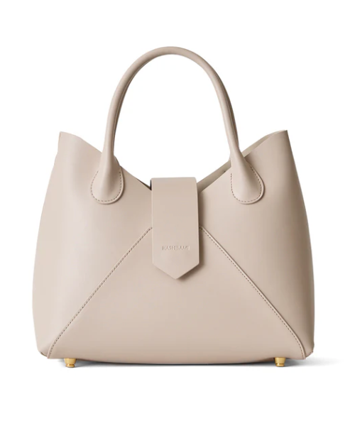 ワイドなシルエットでシンプルなたたずまいが魅力のハンドバッグ。