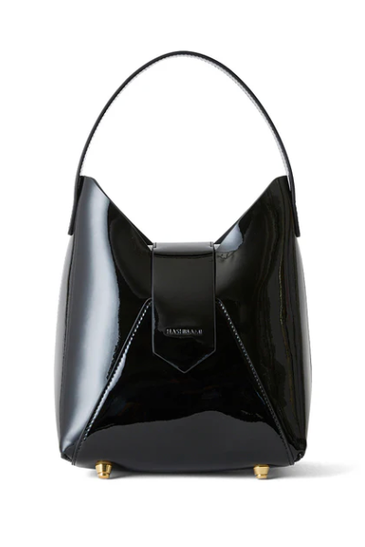 フェズワンハンドルバッグのスタイリッシュなフォルムはそのままに、光沢のあるエナメル生地がパッと目を引くハンドバッグ。